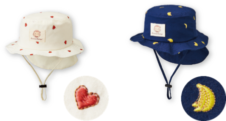 ハート・バナナの小柄なモチーフが散りばめられたサファリハット。