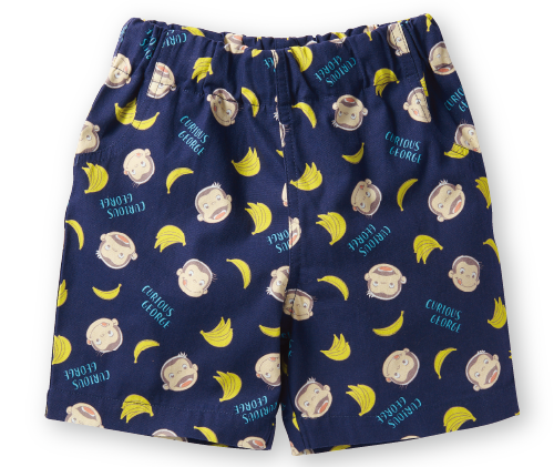 ジョージやバナナがデザインされた総柄のハーフパンツ。