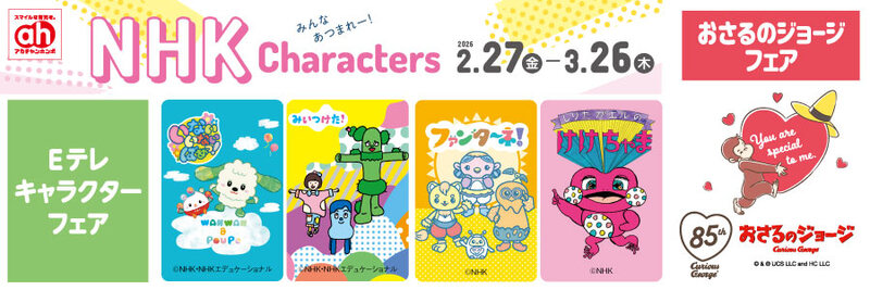 株式会社赤ちゃん本舗(本社:大阪市中央区 https://www.akachan.jp)は、2026年2月27日(金)から3月26日(木)まで「Eテレキャラクター」フェア・「おさるのジョージ」フェアを、全国のアカチャンホンポとオンラインショップ(https://shop.akachan.jp)で開催いたします。