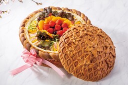 フランスのエイプリルフールの習慣にちなんだ伝統菓子です。フランスではエイプリルフールを「4 月の魚(ポワソンダブリル)」と呼び、魚の形のお菓子やケーキが街中に並びます。バターの香り豊かな魚型のパイに、カスタードクリーム、苺、フランボワーズを飾り、チョコレートの目で愛嬌のある表情に仕上げました。