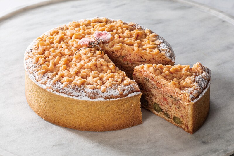 桜の豊かな風味を味わえる、春の訪れを告げるタルトです。桜の花びらと葉の塩漬け、うぐいす豆を加えて焼き上げたタルトに、桜色のシュトロイゼル(フレーク状にしたクッキー生地)と桜をトッピングしました。