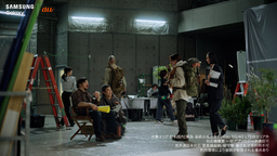 ドラマの役柄に熱量高く入り込む、主人公・みな実を演じる田中みな実さん。1本目のアクションドラマでは隊員を演じ、電波が届かない山奥での遭難シーンでは、助けを求めて彷徨い続けますが、食料も水も尽き絶体絶命に。そんな中、主人公・みな実は緊迫した表情で「au Starlink Directなら、圏外でも地図アプリ使える」と隊員たちに告げたところでカットがかかります。田中さんは「使えていいんですか?」と監督に疑問を投げかけますが、「auなら空が見えれば、どこでもつながるからね」と監督は得意気に語ります。本当にこの演出でいいのかともやもやとしたまま、次のラブストーリーのドラマへと続きます。舞台は暗い路地で主人公・みな実が恋人の腕に抱かれながら今にも息絶えそうなクライマックスを迎えるシーン。最後の力を振り絞り、路地にいる猫をナイトグラフィービデオで撮影する主人公・みな実が残した言葉は「暗がりでもね、撮影した動画がキレイ」。再び田中さんは「本当にこれでいいんですか?」と監督に詰め寄りますが、監督は当然のように「先回りするAIフォンだからさ」と語り続けるのでした。最後の刑事ドラマのシーンでは、主人公・みな実が犯人を追い詰め、決定的な証拠としてナイフを取り出した後、”Samsung Galaxy S26 Ultra”を持って「あなたもauの新しいGalaxy!」と決めぜりふを放ちCMは締めくくられます。