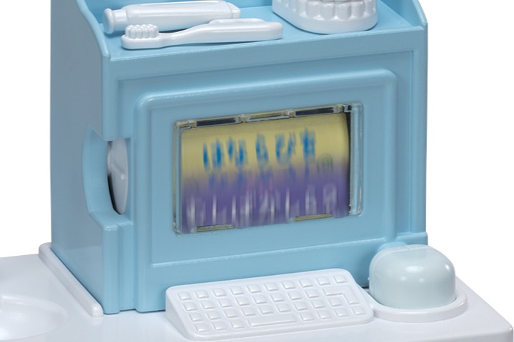 あのさんが「歯が好き」ということからはいしゃさんのテーマが決定しました。“ルーレットパソコン”で患者さんの歯の状態を診断し、”お手当てパッド”をセットして診断に合わせて治療をする一連の遊びが楽しめます。