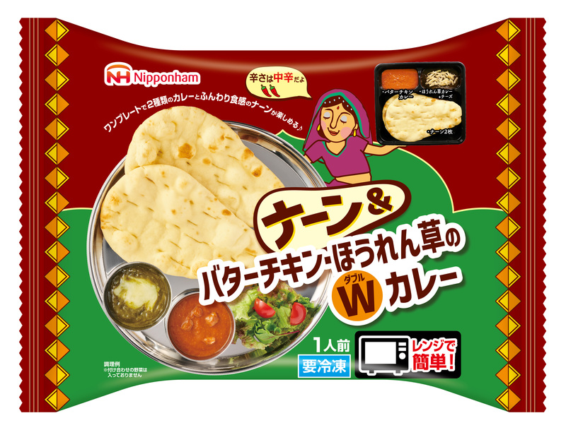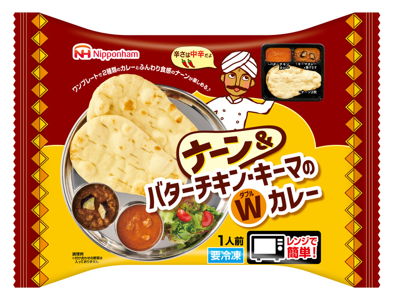 ニッポンハムグループの日本ハム冷凍食品株式会社(本社:東京都品川区、代表取締役社長:阪本 将文/以下、日本ハム冷凍食品)は、家庭用冷凍食品市場で、近年大きく伸長するワンプレートカテゴリー市場に「ナーン&Wカレー」(「ナーン&バターチキン・キーマのWカレー」、「ナーン&バターチキン・ほうれん草のWカレー」)の2品を3月1日(日)から全国の量販店などで発売します。