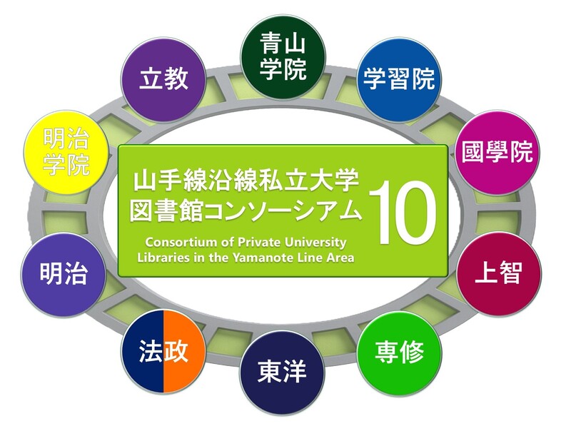 本コンソーシアムは、2000年3月に青山学院大学、学習院大学、國學院大學、東洋大学、法政大学、明治大学、明治学院大学、立教大学の8校の図書館が協定を締結したことにより誕生しました。2021 年に専修大学、2026 年に本学の図書館が加盟し、加盟図書館は10校となります。