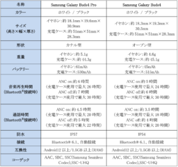 <主な仕様 : 「Samsung Galaxy Buds4 Pro」「Samsung Galaxy Buds4」>