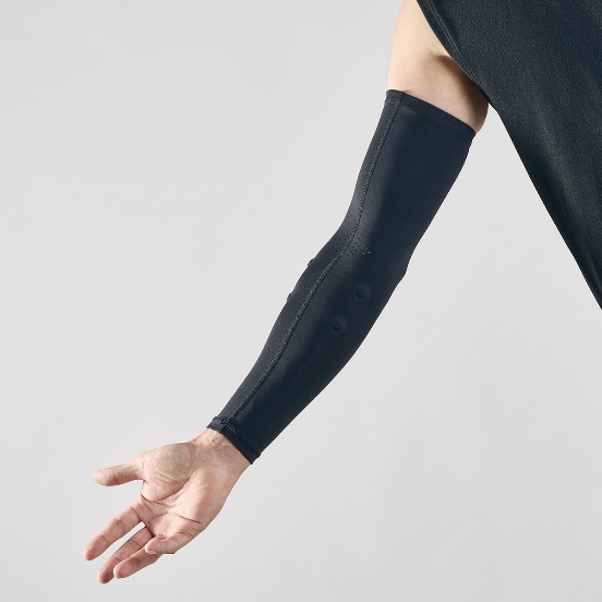 コラントッテSPORTS アームサポート 当社従来品の磁石より1/2以下の厚みながら磁力アップを実現した「薄型フラット磁石」を採用。アスリートの知見とコラントッテの独自技術から生まれた新しいアームサポート。 上腕から手首までをカバー、筋肉を適度にホールドし、筋振動を軽減します。紫外線遮蔽率(UVカット) 99%以上。 吸水速乾性のある4WAYストレッチ生地で、立体的なパターン設計により装着部位にフィット。ひじ関節内側には通気を促すパンチング加工を施し、快適にご着用いただけます。 ひじ関節内側付近に、160ミリテスラの薄型希土類永久磁石4個を、コラントッテ独自のN極S極交互配列で配置。装着部の血行を改善、筋肉のコリを緩和、回復を促します。