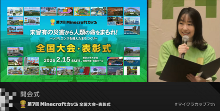 2月15日、積水ハウスがゴールドパートナーとして参画している「第7回Minecraftカップ」まちづくり部門全国大会と表彰式が開催されました。会場は東京大学大学院 情報学環・福武ホールです。28組のファイナリストがプレゼンテーションに挑み、その様子はYouTubeでもライブ配信されました。