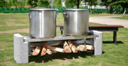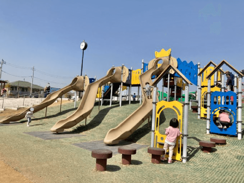 | 【子ども向け遊具】 | 【パーゴラを備えた芝生広場】 | 【災害時用のかまどベンチ】 |
