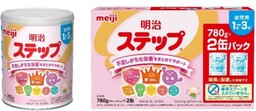 左より「明治ステップ 780g」、「明治ステップ2缶パック」(780g×2) 希望小売価格:左より2,804円(税込)、5,607円(税込)