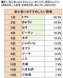 上・中級者がおすすめする育てやすい野菜は「トマト」が1位