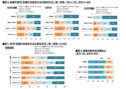 未経験者の認知が低い背景には、家庭菜園そのものへの興味・関心の差が影響していると考えられます。一方、上級者よりも中級者の方が認知が高い理由としては、性別構成の違いが影響していると考えられます。性別比較で見ると、これらの栽培方法は男性よりも女性の認知が高い傾向にあり、上級者に比べて中級者の方が女性の構成比が高いことが、認知率の差に影響している可能性が示唆されます。