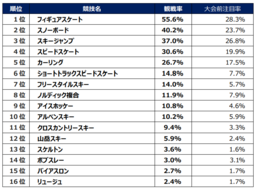 知名度アップ6位の千葉百音選手は惜しくもメダルには届きませんでしたが、次ページ以降の【競技に関する調査】で触れるように、今大会はフィギュアスケートの観戦率と満足度が高く、その影響もあって代表選手全員の認知が進みました。