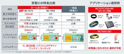 新チップセットは、好評をいただいている最大1W給電が可能な「ML7660(受電)」「ML7661(送電)」の派生タイプです。給電量を最大250mWに抑えるとともに、充電ICへの電力供給に必要なスイッチングMOSFETなどの外部部品を内蔵しました。これらにより、小型ウェアラブル機器、特にスマートリングが求める電力クラスに対して、実装面積と給電効率の両面で最適化された設計となっています。