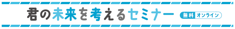 「君の未来を考えるセミナー」は、デジタル時代に登場した「新しい職業」を知り、将来の選択肢を広げるオンラインセミナーです。毎月、世の中に新たな価値を創造しているリーダーをお招きし、Zoomによる60~90分の生配信で、講義と質疑応答を全国へお届けしています。これまでの講師は、データサイエンティスト、ホワイトハッカー、機械学習エンジニア等。新たな職業・生き方や、リーダーたちの取り組み・熱い思いに触れることで視野を広げ、夢を見つけ志を高めるヒントになることを願っています。「自分は将来どうありたいのか?」「何のために勉強するのか?」、そんな悩みや不安がある高校生にぜひ参加してほしいセミナーです。