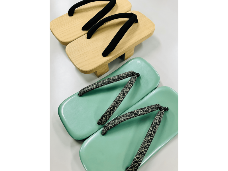30cm サイズほどある、大きな力士の雪駄と下駄。