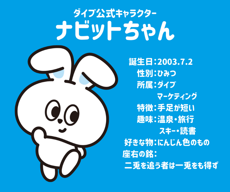 今回のプレゼントの1つである「ナビットちゃん」のマスコットは、ダイブのオリジナル賞品です。「ナビットちゃん」は株式会社ダイブの公式キャラクターで、2025年11月に“うさぎとして初めて”ダイブに入社しました。