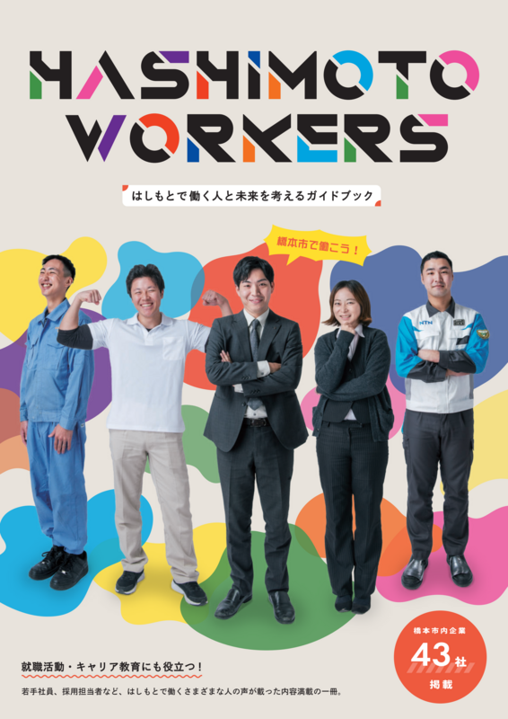 橋本市では、市内企業への就職促進および地元企業の魅力発信を目的として、市内企業で働く人を紹介する冊子「HASHIMOTO WORKERS」を発行しました。