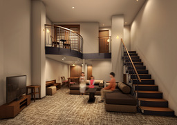 客室内に階段を配した二階層のメゾネットタイプ客室が、より快適な空間へと生まれ変わります。リゾートならではの広々とした間取りで独立したツインルームを2室設け、三世代旅行やグループ旅行に最適です。
