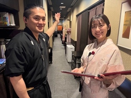 六歌仙では、入店時から和服姿のスタッフが接客を行なっています。女性は華やかな着物、男性は凛とした袴姿でお迎えいたします。訪日観光客の利用が多いことから、日本文化を体感できる演出の一環として実施しています。写真撮影にも快く応じているため、旅の思い出づくりにも最適です。