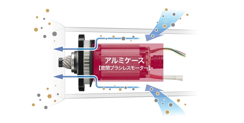 ②過酷な現場を支える、タフな密閉ブラシレスモーター