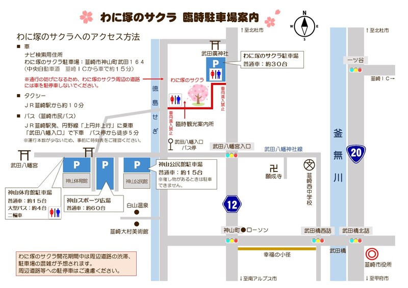 わに塚のサクラ駐車場(約30台)