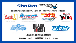 テレビアニメ『ポケットモンスター』や劇場版『名探偵コナン ハイウェイの堕天使』 をはじめ、2026年放送予定の『アオアシ Season2』『BLACK TORCH』など、ShoProが携わるアニメ作品が⼤集合!会場でしか体験できない展示と、AnimeJapan限定ステージをお楽しみください!