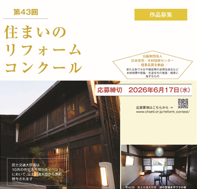 詳細は、下記URL「第43回住まいのリフォームコンクール」応募要項をご参照ください。