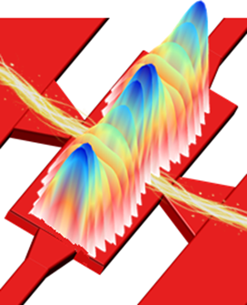 幅の広い導波路内で複数の光の進み方が重なり合うことで、光の強さの分布が変化する現象。この性質を利用して光を分けたり集めたりすることができる。
