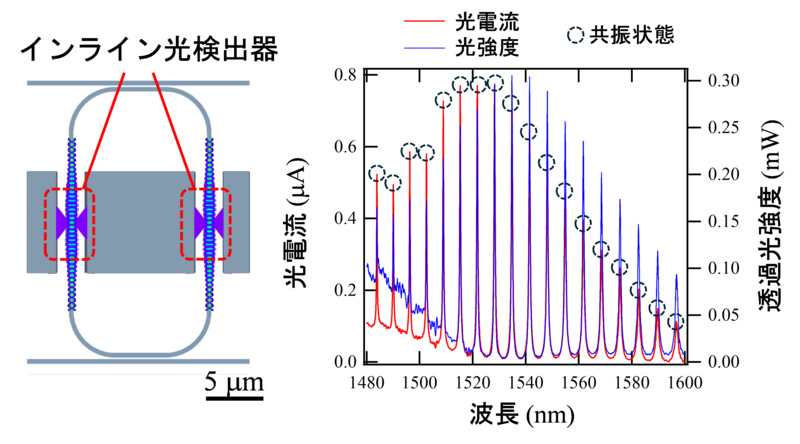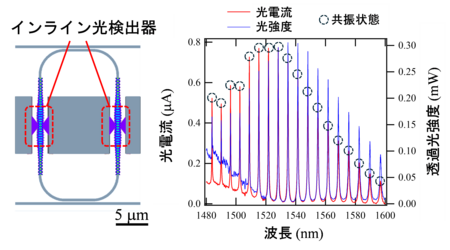 図4:インライン光検出器を装荷したリング共振器と共振状態の検出