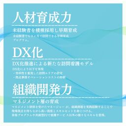 2040年に向けて後期高齢者が人口の2割に達し、在宅医療ニーズがピークを迎える中で、当社は強みである「育成」と「効率化」を武器に、従業員が“いきいき”と働ける職場環境を維持してまいります。