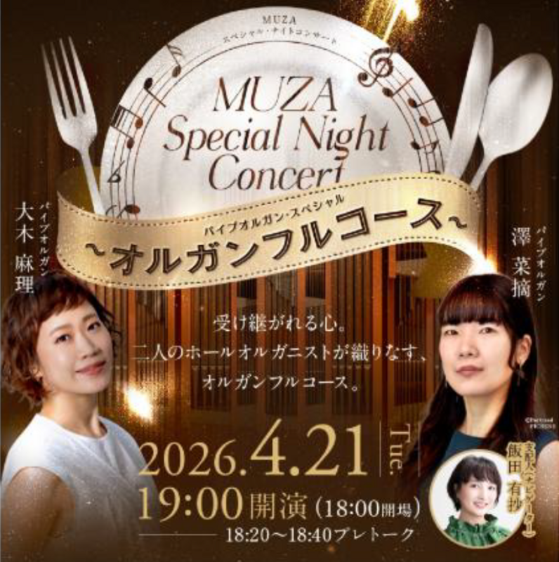 ・4月21日(火)MUZAスぺシャル・ナイトコンサート パイプオルガン・スペシャル~オルガンフルコース~
