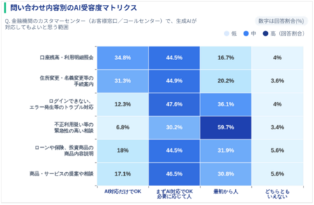 ・ 問い合わせ内容別のAI受容度(残高照会/不正利用/商品相談 など)