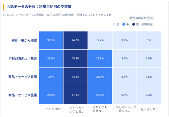 また、会話データのAI分析やオペレーター支援に対する高い受容性は、VOC(Voice of Customer)を起点とした商品・サービス改善や、金融包摂の推進につながる可能性を示しています。