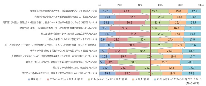 図2.日常のさまざまな場面でサポートを受けたいのはAIか人間か