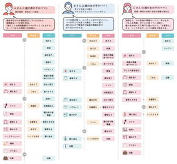 通常の家事・育児ルーティンはママ、「おねしょ」などのイレギュラー対応はパパというように役割を分担。パパが子どもへの声かけを担い、朝食や着替えといった次の行動を促すことで、朝の流れがスムーズになったようです。