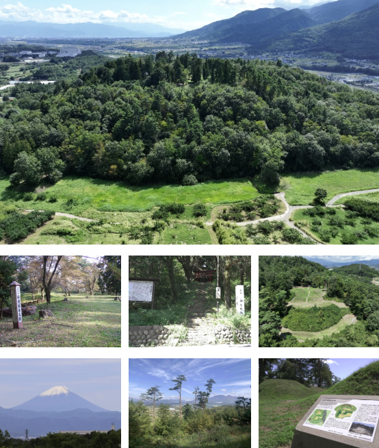 1582年、織田・徳川軍に攻められ、入城からわずか68日という短さで勝頼公自ら火を放つこととなりましたが、近年の発掘調査により、丸馬(まるうま)出だしや三日月(みかづき)堀ぼり、出構(でかまえ)など、その遺構からは武田家の築城技術が随所に施されており、戦国武田家の集大成の城をいまに伝える良好な城跡です。