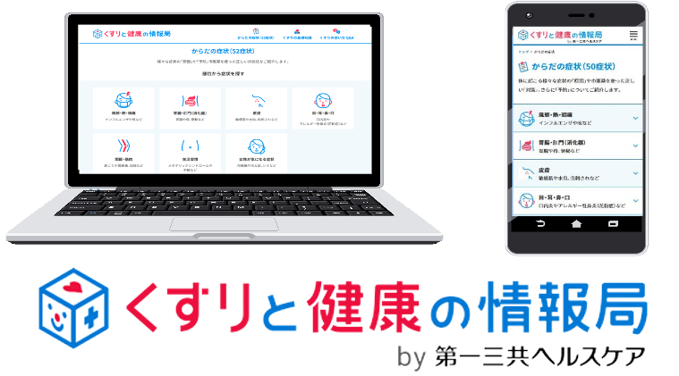 第一三共ヘルスケアでは、⾧年製薬事業に携わってきた経験と知識を生かし、「くすりと健康の情報局」を運営しています。気になる症状があればすぐスマートフォンで検索する時代に合わせ、身近な症状の原因・予防・対策や市販薬の役割などを紹介しています。