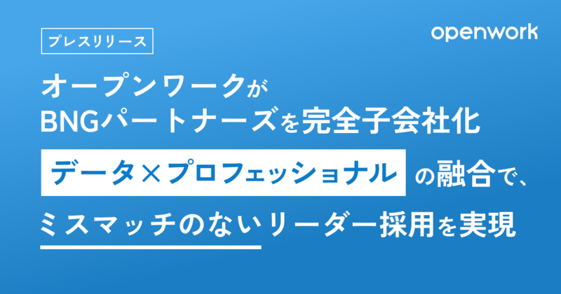 オープンワーク、経営層・幹部採用に強みを持つBNGパートナーズを完全子会社化 〜「データ×プロフェッショナル」の融合で、ミスマッチのないリーダー採用を実現〜