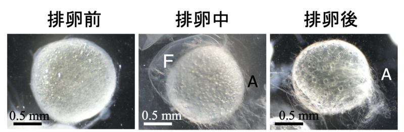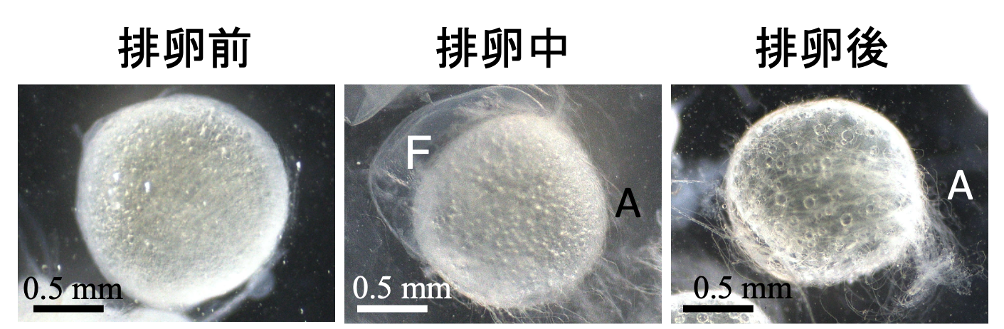 各 環境における実験では、オスとメスのペアを水槽に入れ、1時間ごとにメスを取り出し、卵巣を顕微鏡で観察して排卵の有無を確認した。
