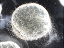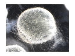 図2. 排卵により卵が膜(F)から離れると渦巻き状に密着していた糸(A)がほどける。