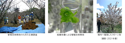 このたび、こうした名木・貴重木を次世代へ継承する取り組みを体系化し、その意義を知っていただくため、「桜のたすき」プロジェクトを発足しました。古くから日本人に愛され、世界でも日本を象徴する花として親しまれる「桜」。そこに「たすき」という言葉を重ね、大切なものを絶やすことなく未来へつないでいくという想いや、組織培養などの科学技術と文化的価値を結び付けるという意味を込めて命名しました。「桜のたすき」プロジェクトは、桜に関わらず、その他の名木・貴重木の後継樹育成も包括した取り組みとして推進します。