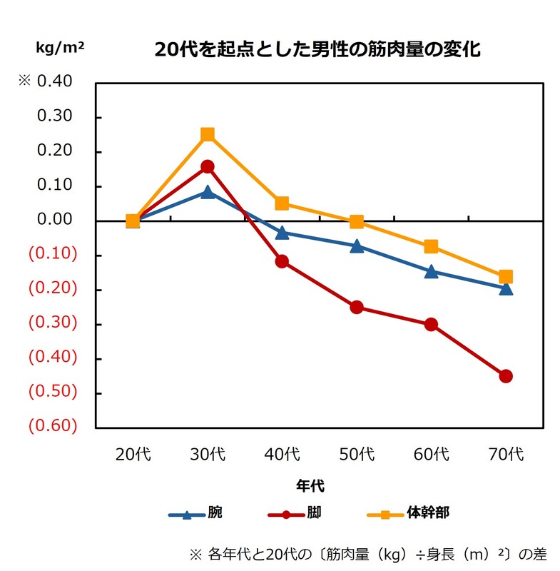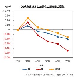 図4 20代を起点とした男性の筋肉量変化(タニタ調べ) ※3