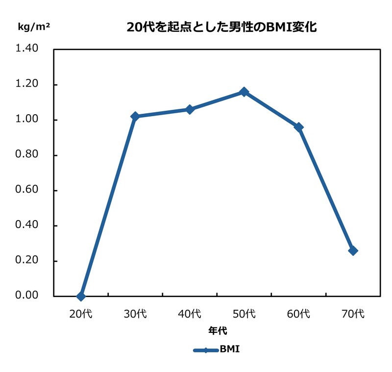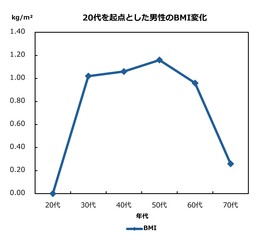 図2 20代を起点とした男性のBMI変化(タニタ調べ)※3