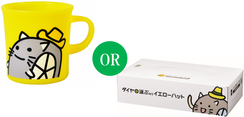さらに、キャンペーン期間中、店頭で税込2,000円以上のお買物時に「SDカード(Safe Driverカード)」をご提示いただいた方には「ハットにゃんプラカップ」または「BOXティッシュ」をプレゼントいたします。