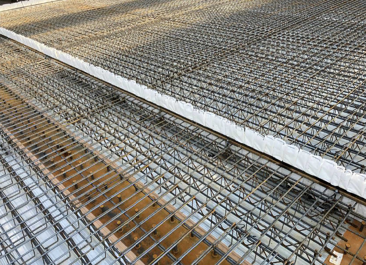 本⼯法では、これまで床スラブのコンクリート打継ぎ施⼯における⼤きな課題であった「コンクリート漏れによるはつり⼿間」、「コンクリート打継ぎ表⾯のひび割れ」、「直線的な打継ぎ⾯の美観性確保」に対するソリューションを提案しています。