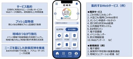 市民が普段使いできる市民ポータルアプリの導入を検討します。必要な情報のプッシュ通知や、既存Webサービスの集約、市政への参画を促進する基盤を構築します。