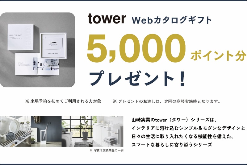 展示場・分譲地来場キャンペーン(住宅フェア)、towerのWebカタログギフト5,000ポイント分をプレゼント