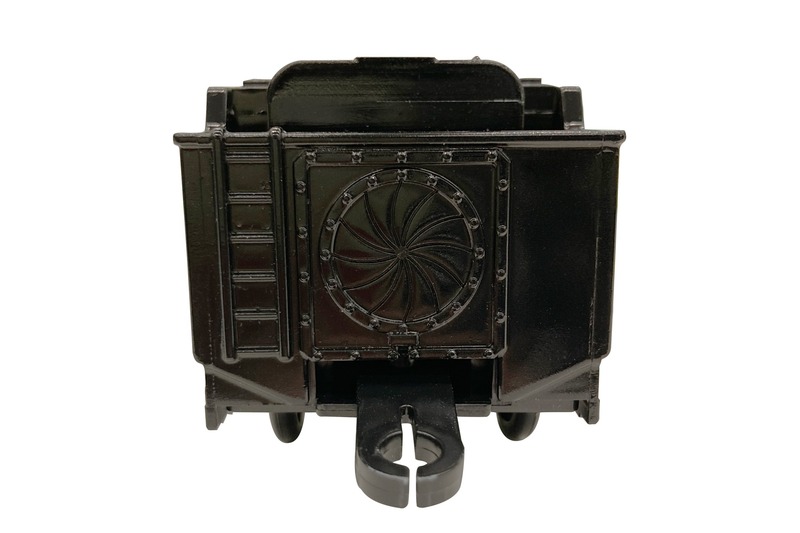プラレールらしいデフォルメを加えながらも、車両のモールドやカラーリングなど細部にまでこだわりました。本商品オリジナルの橋脚やエンドレール、標識が付属し、アニメのシーンを再現した躍動感のあるディスプレイが可能です。炭水車の後部には「999」号のコクピットへの入り口も彫刻で再現しています。
