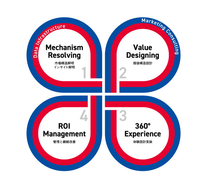 本書で取り上げる「パートナー・リレーションシップ・マネジメント(PRM)」は、電通が提唱する、事業グロースのための次世代マーケティングモデル「Marketing For Growth」の4つのプロセスのうち、「1. Mechanism Resolving(市場構造解明、インサイト解明)」を起点としたサービスです。